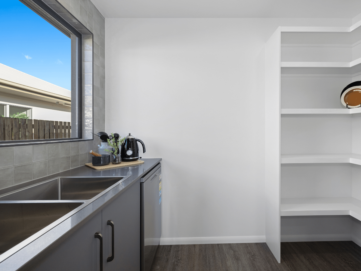 And like his great grandma, Bette Grady, – Flynn loves to cook, or at least help out in the kitchen. The kitchen in “The Flynn” is just perfect for efficiently and easily preparing the family meal, or for creating something to impress friends at a dinner party. The butler’s pantry, which is designed to serve as both an integral functional extension of the kitchen, and to be closed off to keep “unfinished business” out of sight so the main kitchen remains looking pristine. It provides ample room to store all those cooking accessories and ingredients (and let’s be honest – the dirty bowls when unexpected guests arrive! Just close the cavity slider door and your guests are none the wiser.)