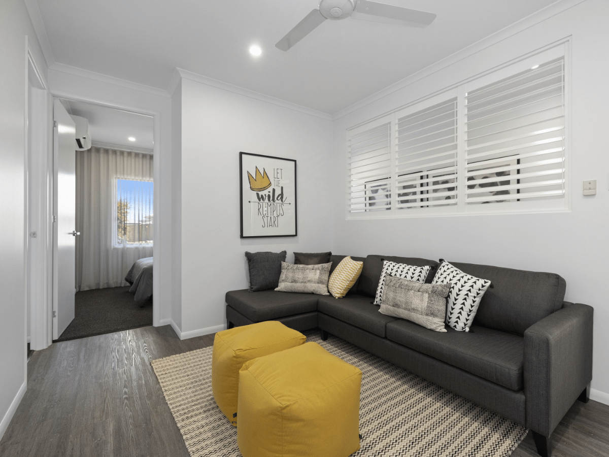Flynn is an avid reader and a keen student. “The Flynn” provides a number of separate zones so the whole family can come together but can also find their own space. Younger kids like Flynn can do their homework under mum’s watchful eye at the large kitchen bench. Older kids might take advantage of a desk in their bedroom. They may even get to use the study if mum or dad are not using it as the perfect “working from home” work centre.