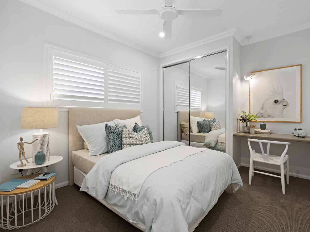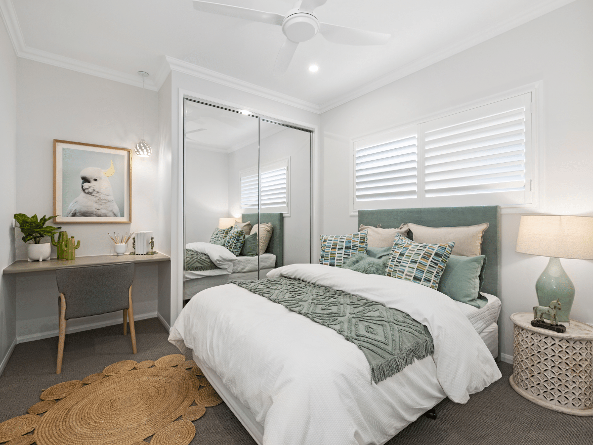 The parent’s bedroom provides the perfect retreat at the front of the home. With a luxurious and spacious yet functional ensuite which features a double shower, free standing plunge bath, large vanity with integrated make up station, a separate toilet, and loads of natural light. The master bedroom zone is complete with the spacious walk-in robe.
